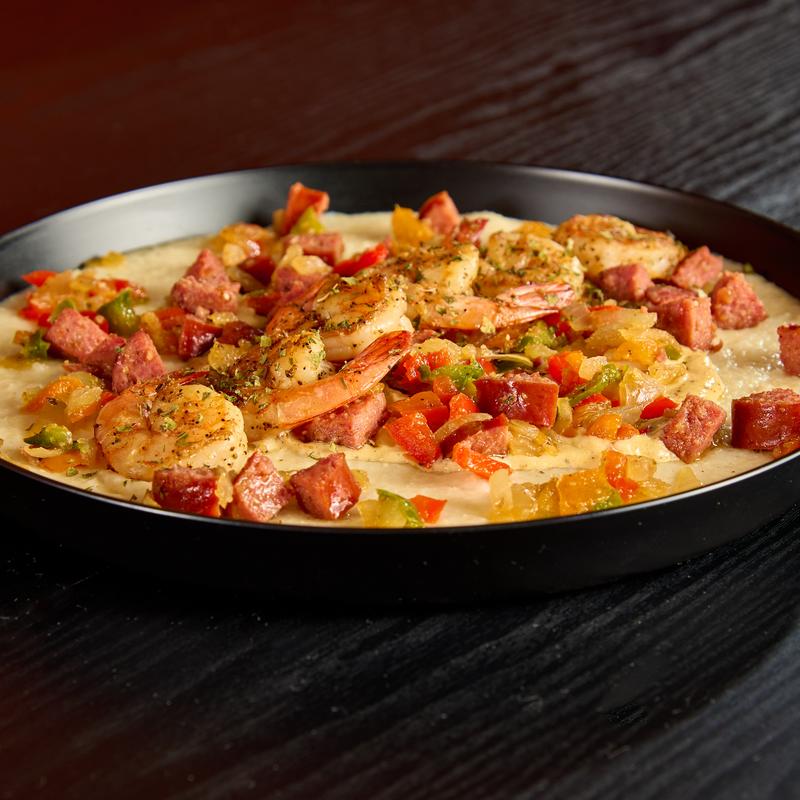 Delicious buttery grits made with sautéed shrimp, smoked beef sausage, sautéed onions, and peppers in our creamy Creole sauce.