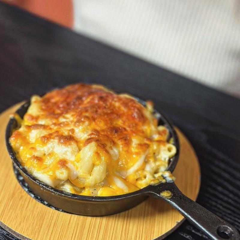 Two juicy patties, smashed and seared on a hot griddle, layered with cheddar cheese, caramelized onions and a buttery toast. Finished with a house sauce and served with one fixin.!